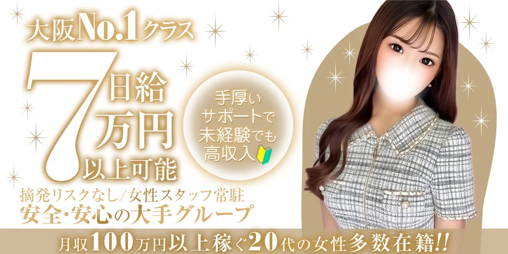 - 当店は創業10年の関西屈指の大手グループで18歳から30歳前後までの女性をコンセプトとしたお店となっております。採用基準は容姿だけでなく、お店のコンセプトを良く理解し、貴女の内面から溢れる魅力や可能性などを重視しております。当グループの顧客会員数は数万人規模で抜群の知名度、集客力で安定した高収入を実現しており、日給5万円~10万円以上稼ぐ女性が多数在籍しているのも魅力のひとつです。